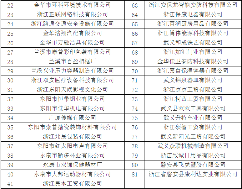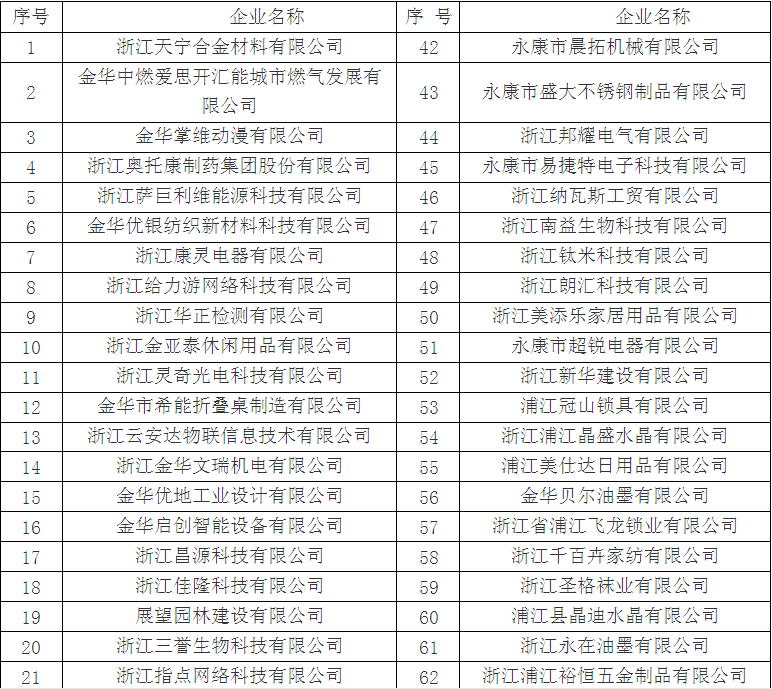 擬認定2017年金華市高新技術(shù)企業(yè)名單