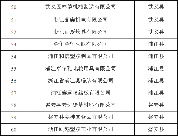 根據(jù)《金華市專利示范企業(yè)認定與管理辦法》(金政發(fā)〔2004〕132號,金政發(fā)〔2008〕70號修改)文件精神,在各縣(市、區(qū))科技管理部門推薦的基礎(chǔ)上,經(jīng)材料審查、專家評審,擬認定金華市希能折疊桌制造有限公司等60家企業(yè)為2017年金華市專利示范企業(yè),現(xiàn)予公示,接受社會監(jiān)督,公示期從2017年11月16日至22日止。如有異議,請來人來電反映。