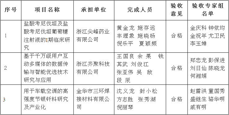 金華市級科技計劃項目驗收結果公示清單
