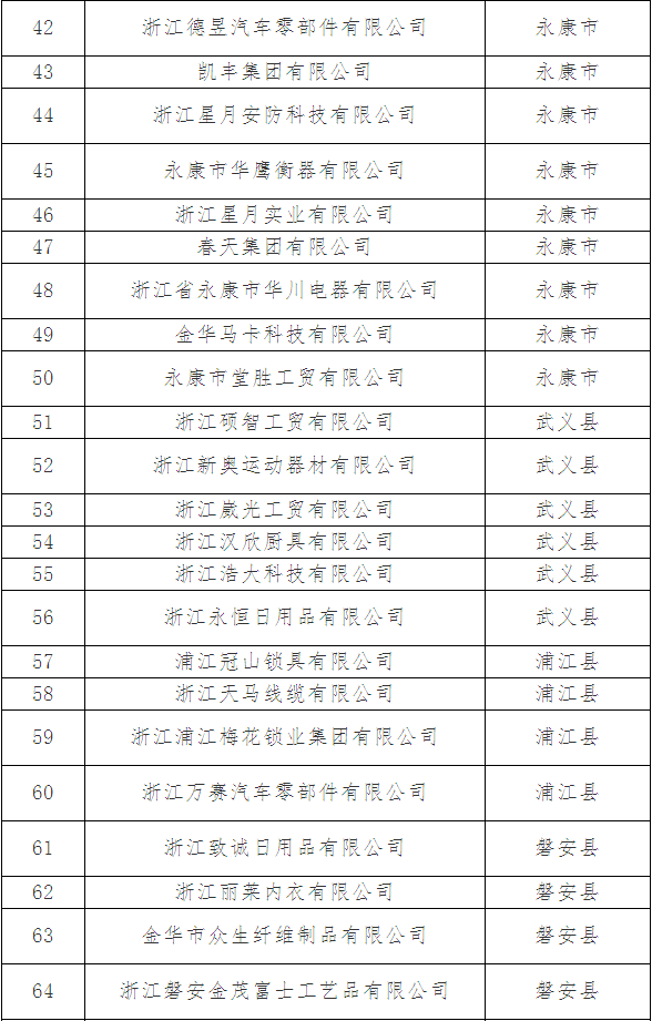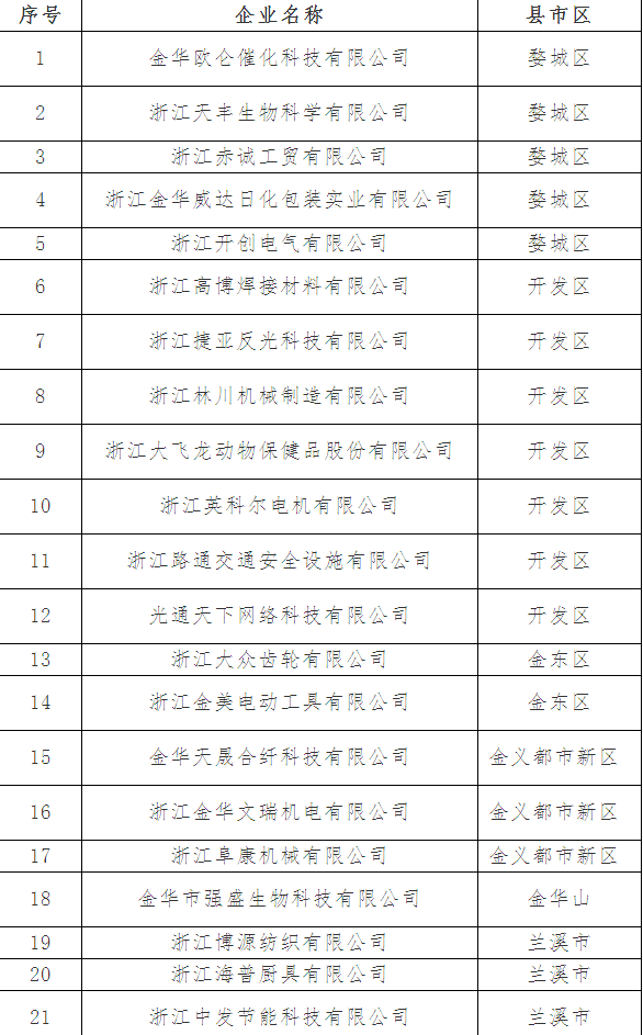 擬認(rèn)定2018年金華市專(zhuān)利示范企業(yè)名單