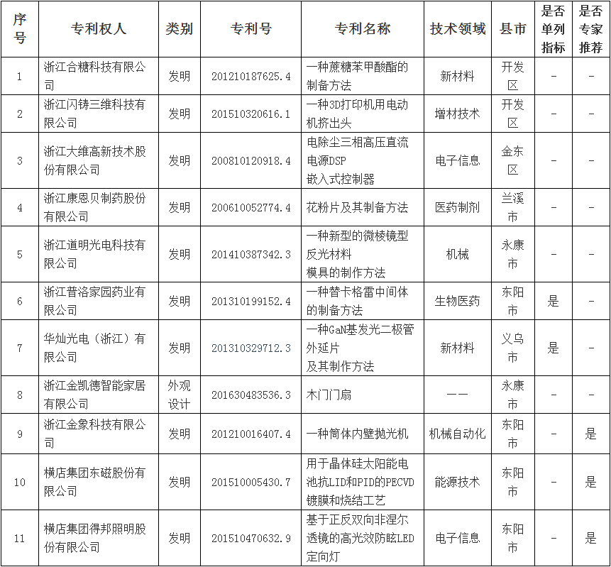 2018年浙江省專利獎(jiǎng)金華市擬推薦項(xiàng)目名單(第一批)