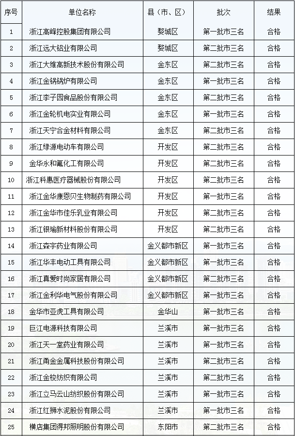 金華市”三名“培育試點(diǎn)企業(yè)復(fù)審結(jié)果