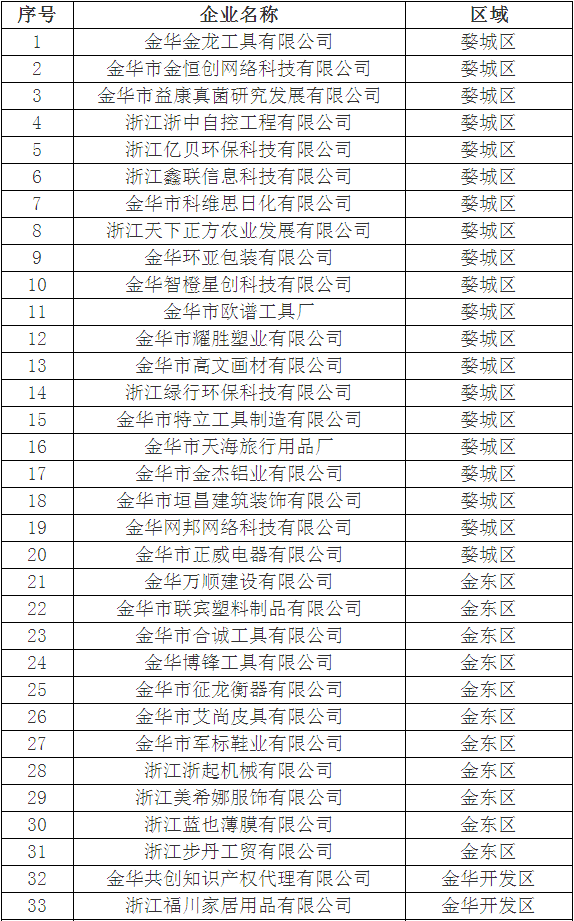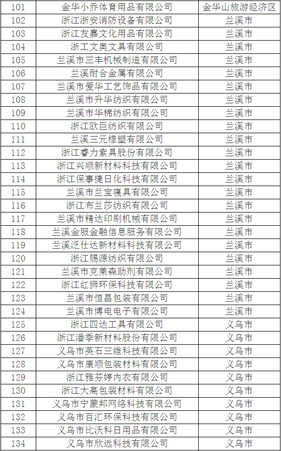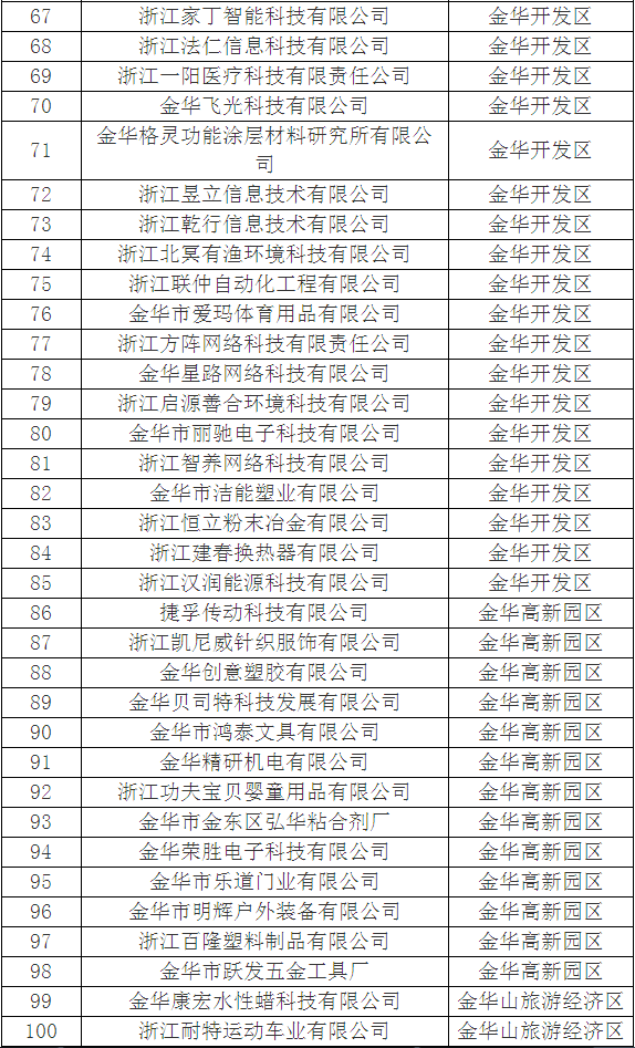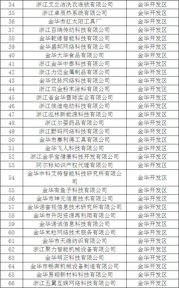 2018年金華市第三批浙江省科技型中小企業(yè)擬認(rèn)定名單
