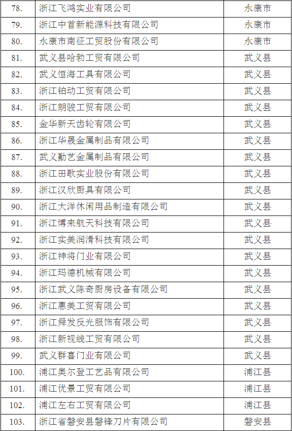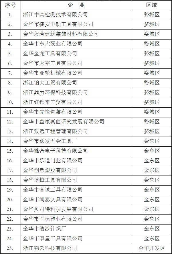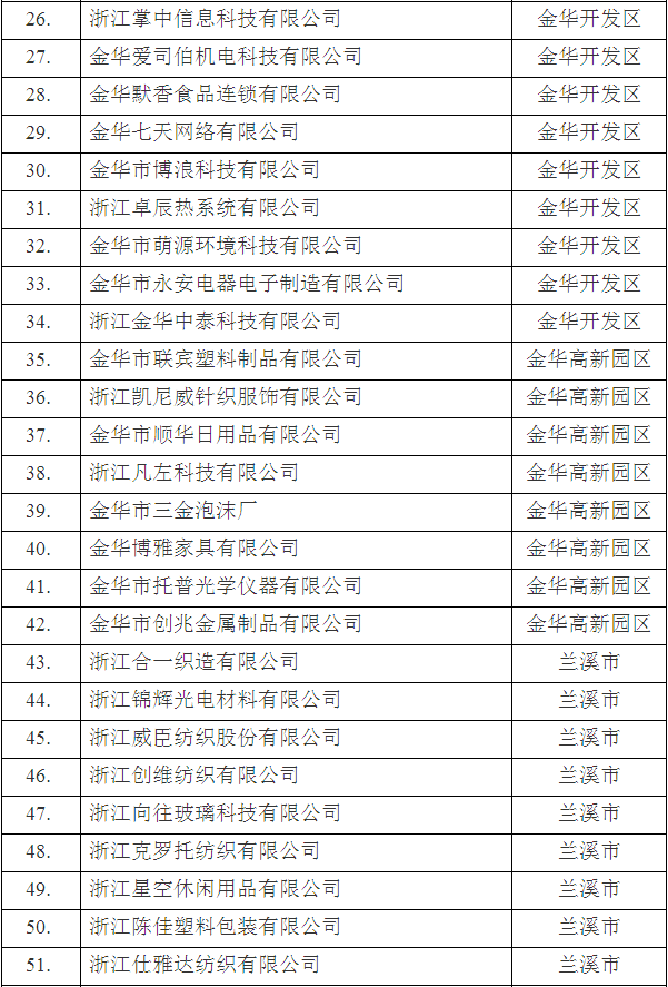 2018年第二批金華市高新技術(shù)企業(yè)名單
