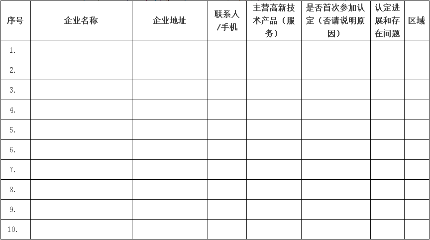 請(qǐng)各縣(市、區(qū))科技局和開(kāi)發(fā)主體科技主管部門(mén)盡早謀劃、精心組織、狠抓落實(shí)、確保實(shí)效,并從1月開(kāi)始,于每月15日、30日前填報(bào)《金華市新申報(bào)國(guó)家高新技術(shù)企業(yè)清單》(見(jiàn)附件1)報(bào)市科技局工業(yè)與高新技術(shù)處備案。