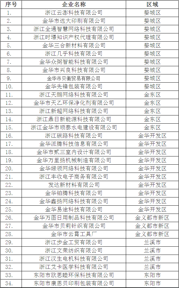 附件:2019年第一批浙江省科技型中小企業(yè)擬認定名單(金華市)
