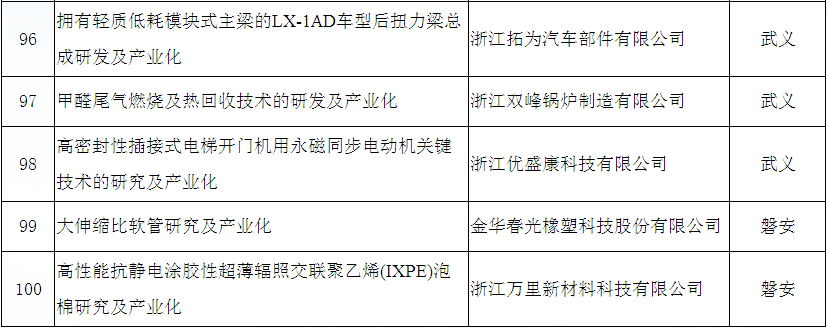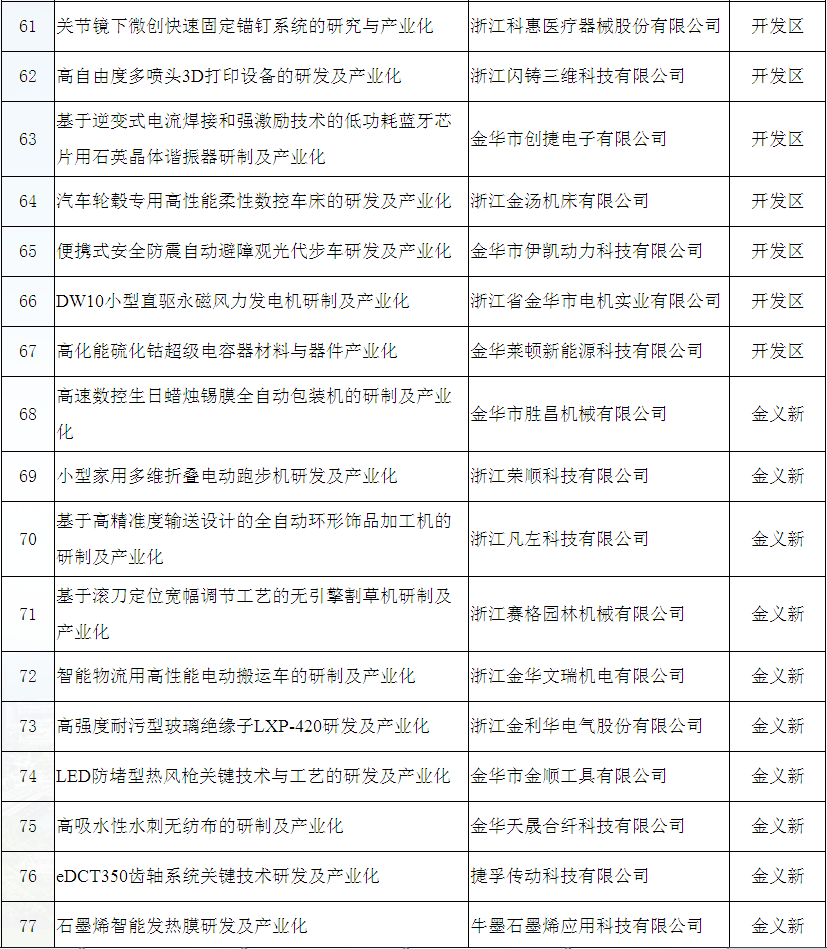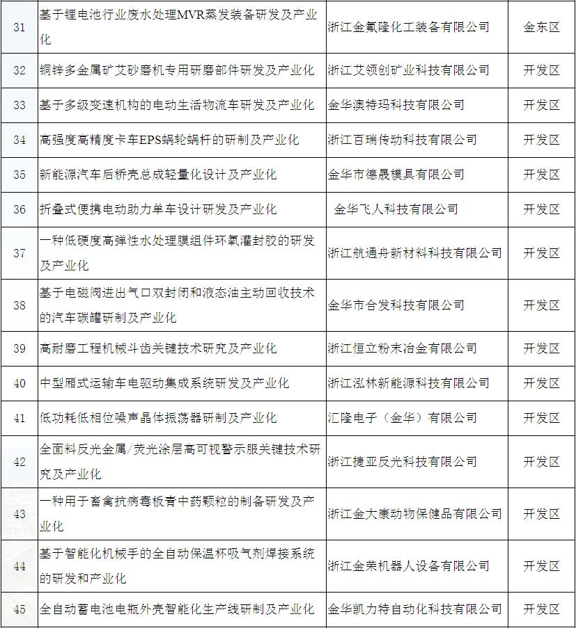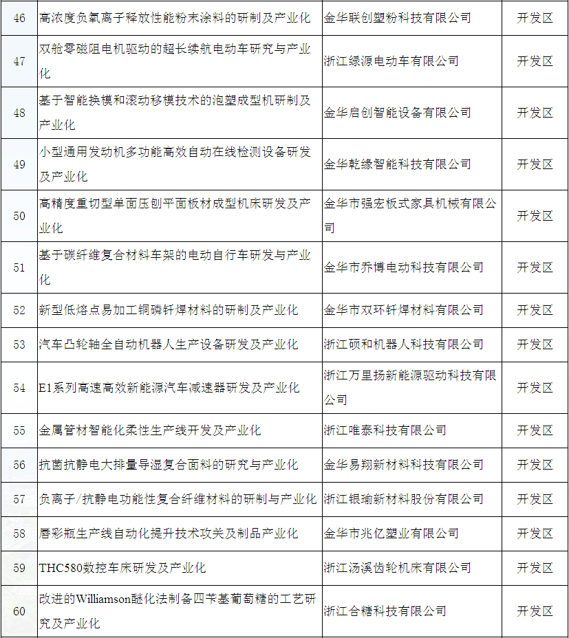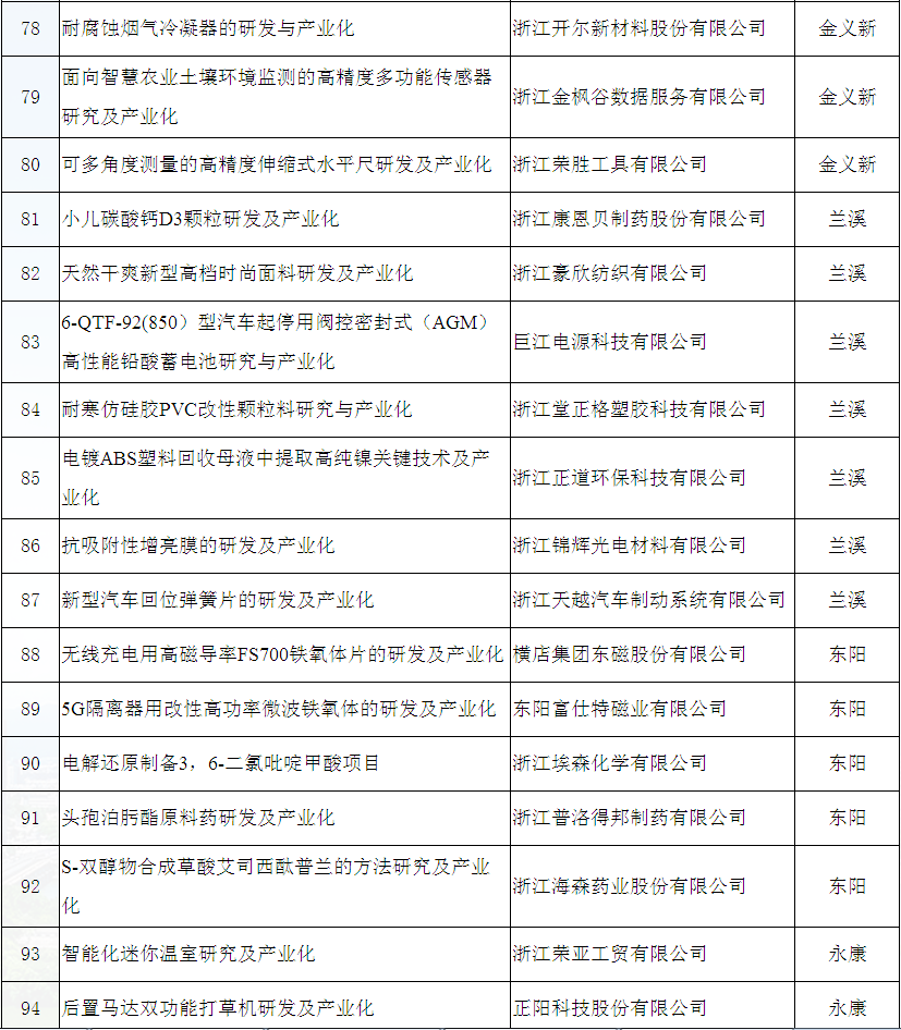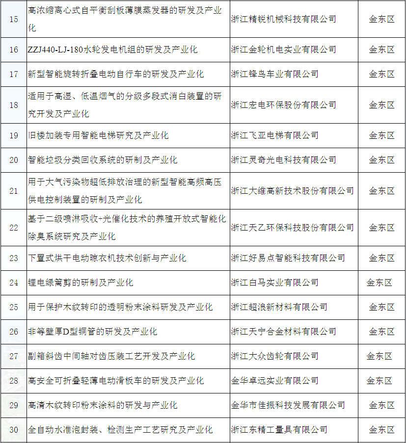 金華市2019年技術(shù)創(chuàng)新項目立項公示名單