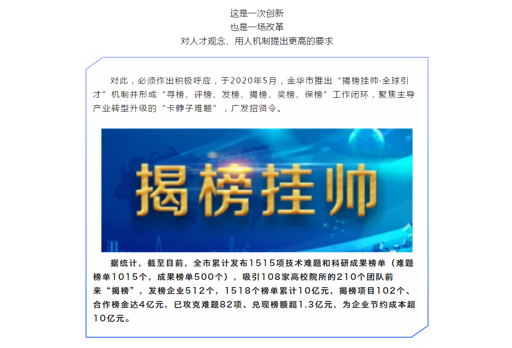 可以探索搞揭榜掛帥,把需要的關鍵核心技術項目張出榜來,英雄不論出處,誰有本事誰就揭榜。